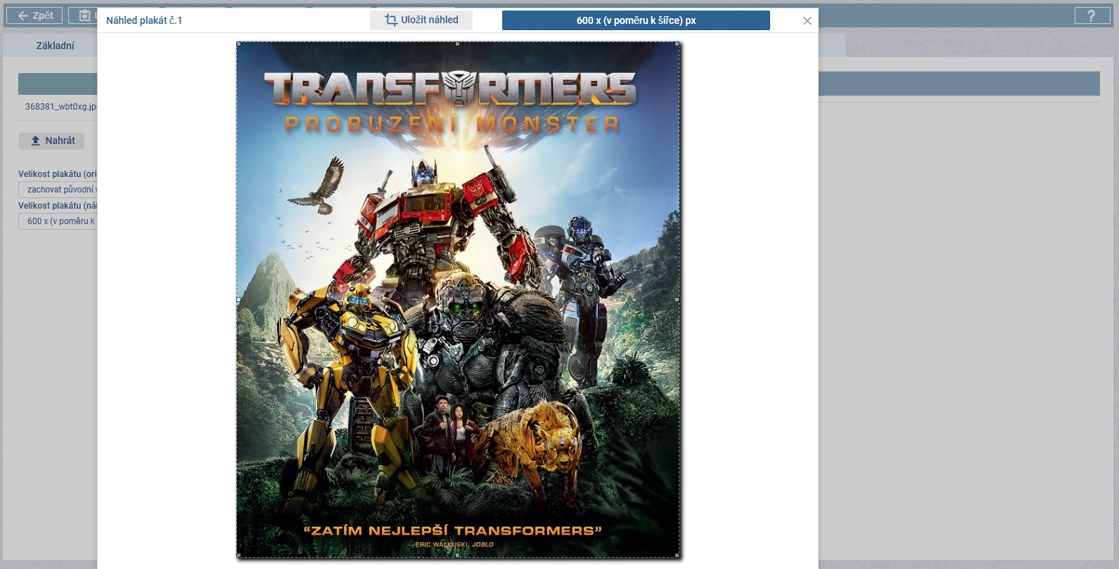 | Youtube | Odkaz k traileru na platformě YouTube (zadavá se pouze kód videa, např z následující adresy jen tučný text https://www.youtube.com/watch?v=EyG6x-oN13c) |