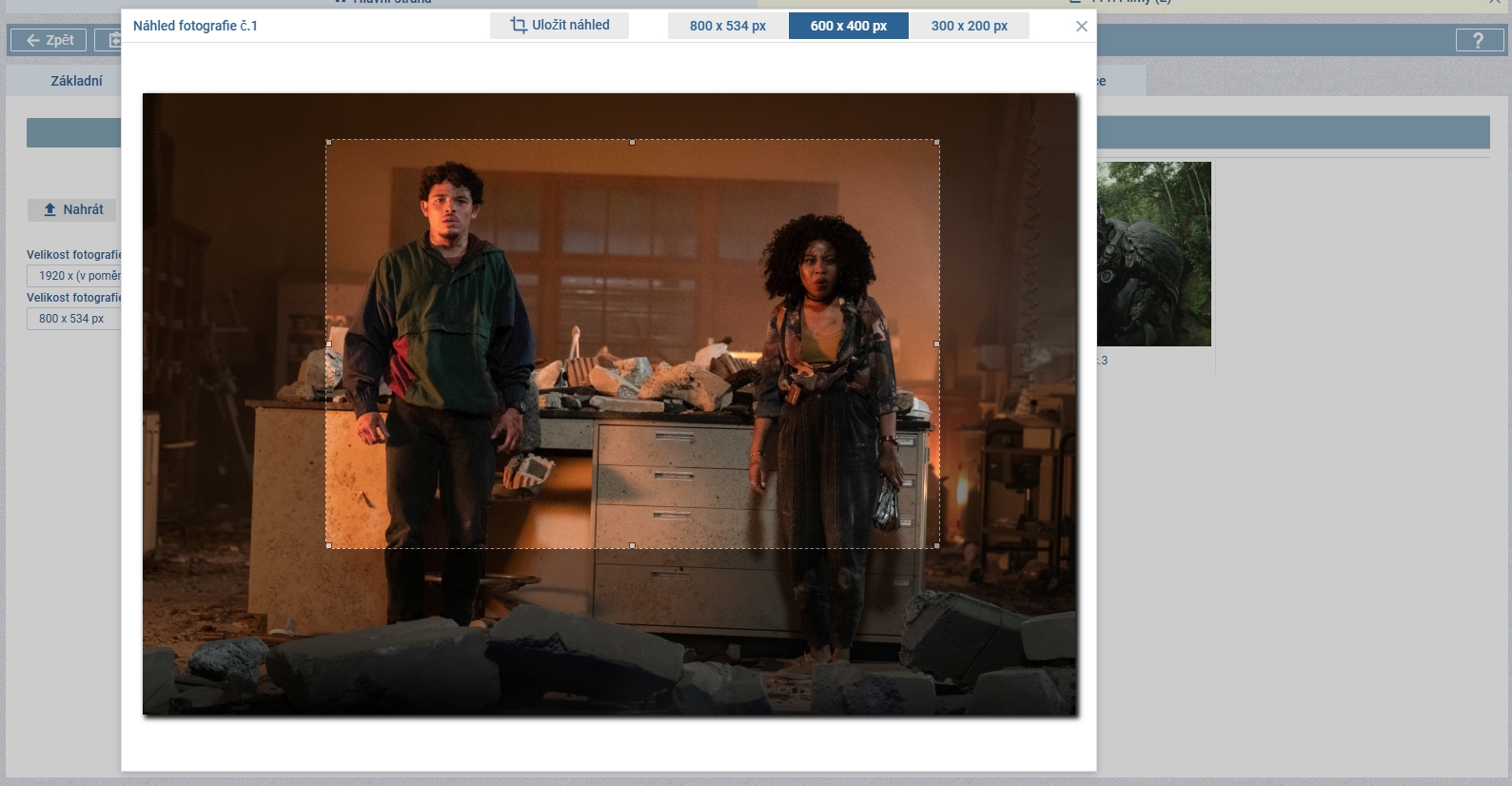 Pro změnu náhledu fotografie proveďte dvojklik na vybranou fotografii. Bude otevřeno okno, kde lze vybrat velikost a oblast náhledu fotografie. Pro uložení náhledu stiskněte tlačítko