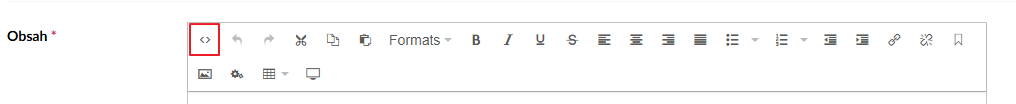 | Obsah * | Samotný obsah sdělení (ve formátu html, kód lze zobrazit pomocí tlačítka <>) |